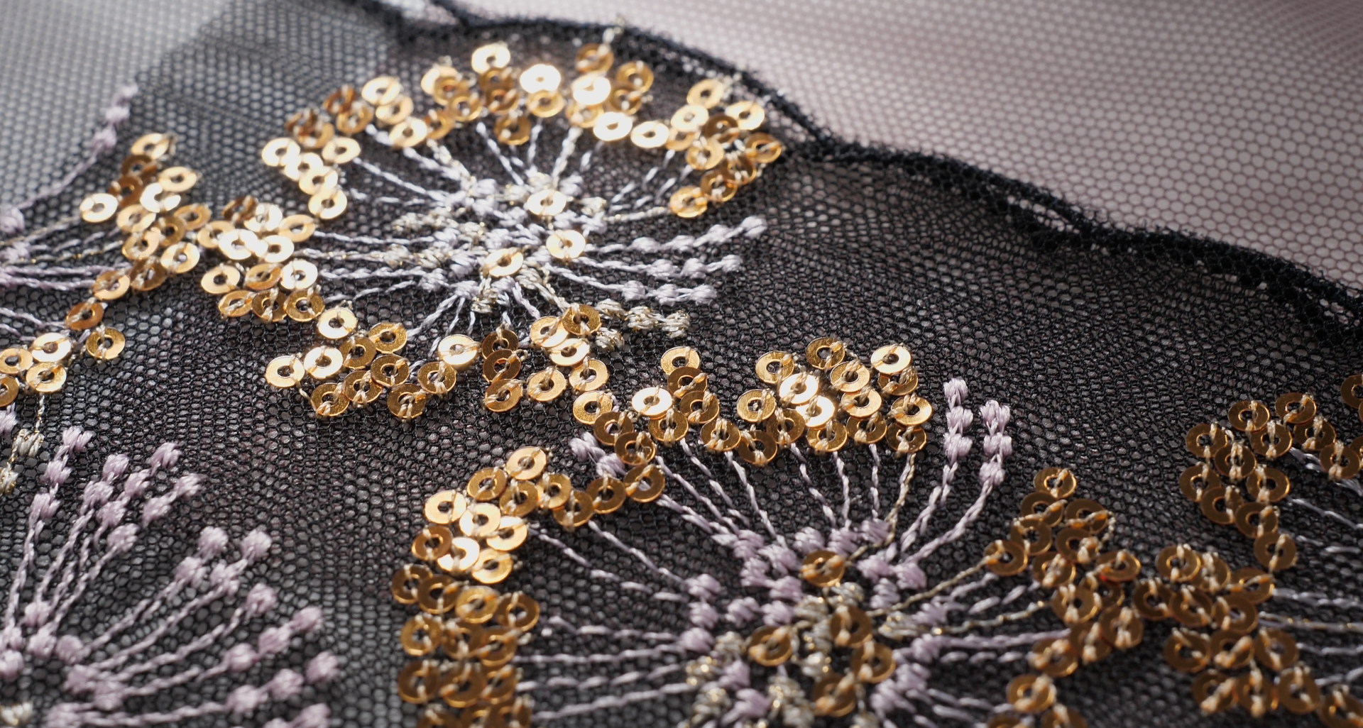 イギリスのLUREX社による繊細なラメ糸が使用されています。